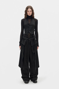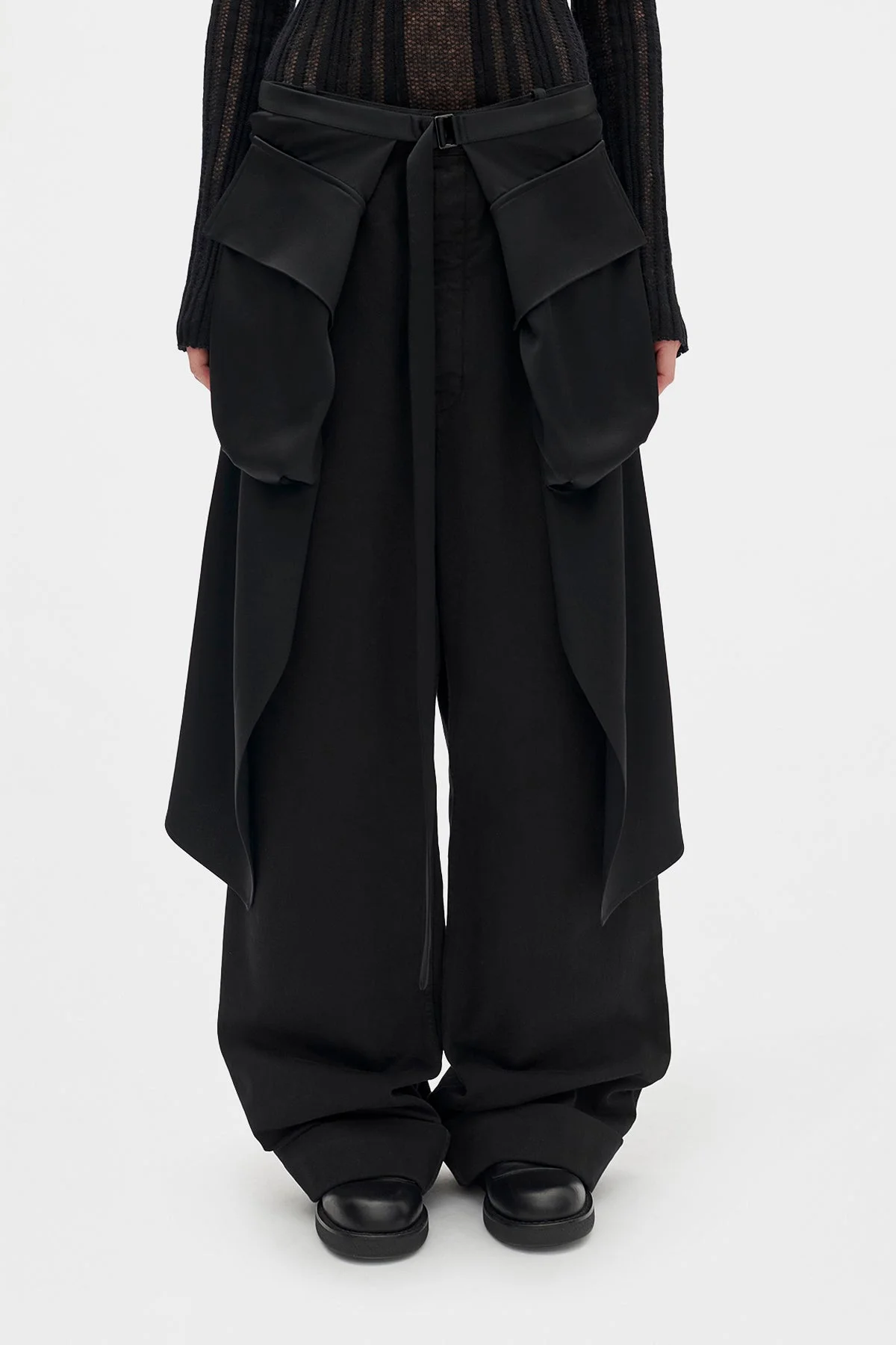 Debora Cargo Apron Skirt - Black - Fluid Cady Satin - Adjustable Buckled Belt - Front Split - Cargo Pockets - Asymmetric Hem - Draped - 72% Acrylic, 27% Viscose - Made in Italy Care To maintain the beauty and integrity of your purchase, we recommend treating it with care. Simple maintenance practices, such as gentle washing and proper storage, can effectively preserve the longevity of your favorites. We encourage you to refer to the care instructions included with each item, designed to help you keep your purchase in top condition. Design Our dedication to excellence extends beyond materials; it encompasses the artistry and craftsmanship illustrated in every piece we create.