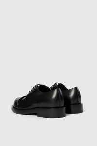 Dex Pintuck Derby Shoes - Black- Front Pintuck - Lace Closure - Stacked Leather Sole - Block Heel - 100% Cow Leather - Made in Italy Ann Demeulemeester shoes embody the essence of luxury and comfort. The generously wide fit is a design choice aimed at ensuring a comfortable wear. For those who prefer a snugger fit, we recommend using an insole. Crafted from the highest quality leather, it is natural for the shoes to feel stiff initially. By wearing and walking in them, they will perfectly mold to the shape of your feet, offering unparalleled comfort. The fit of this item is regular comfort. Consider this information when you select the size Care To maintain the beauty and integrity of your purchase, we recommend treating it with care. Simple maintenance practices, such as gentle washing and proper storage, can effectively preserve the longevity of your favorites. We encourage you to refer to the care instructions included with each item, designed to help you keep your purchase in top condition. Design Our dedication to excellence extends beyond materials; it encompasses the artistry and craftsmanship illustrated in every piece we create.