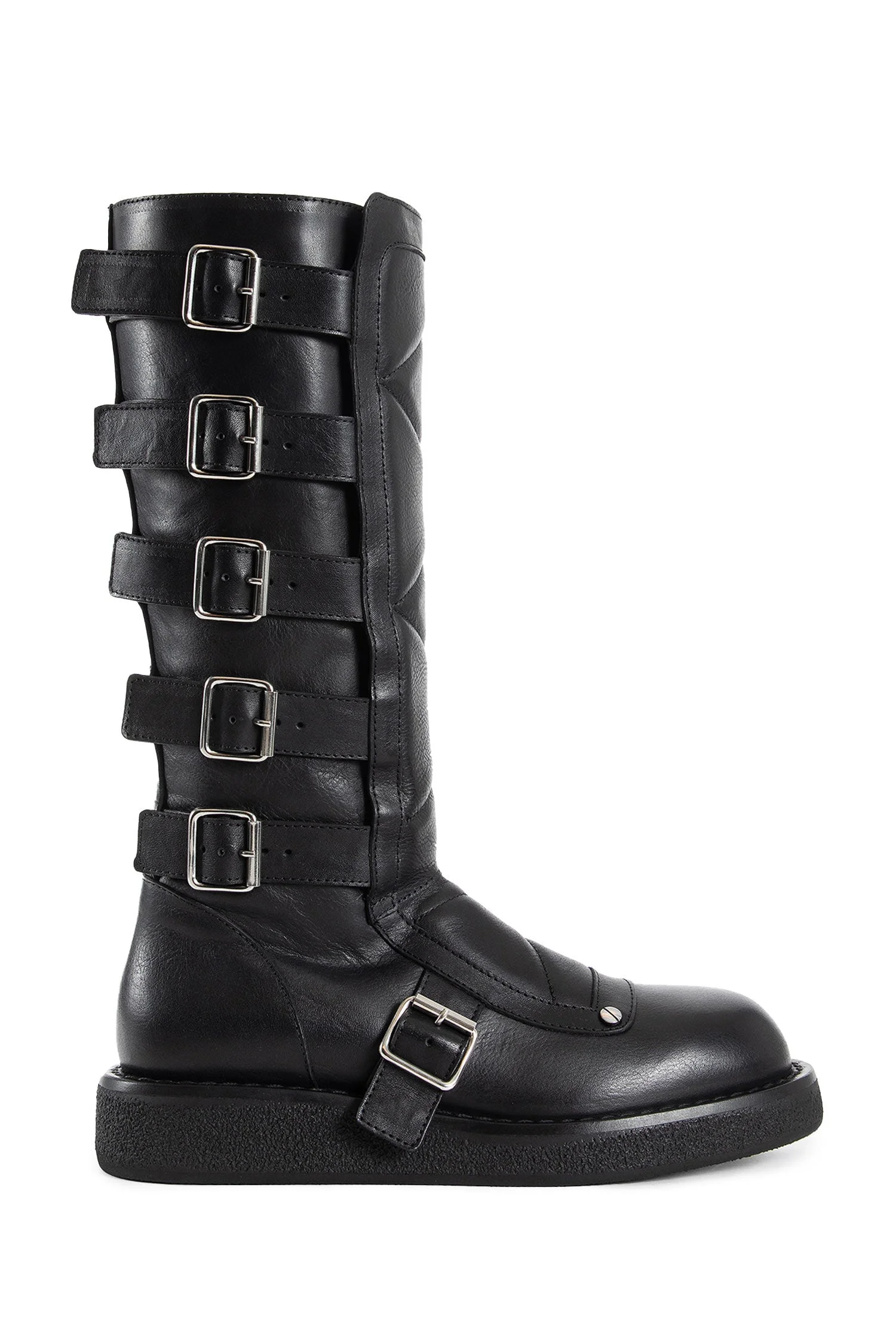 DESCRIPTION - Black - Grained shiny calfskin - Front padded quilting wrap - side buckled leather straps - Front signature rivet - Leather and rubber sole DETAILS - Made in: Italy - Composition: 100% Cow Leather - Model code: B0013306LT141 099 - Item ID: 9747710902614