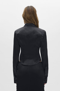 Drika Fitted Shirt with Western Cut – Black – Snap button front closure - Long sleeves with snap cuffs - 100% Silk – Made in Italy Model wears italian size 40 The fit of the item is narrow. Please consider this when selecting your size. Care To maintain the beauty and integrity of your purchase, we recommend treating it with care. Simple maintenance practices, such as gentle washing and proper storage, can effectively preserve the longevity of your favorites. We encourage you to refer to the care instructions included with each item, designed to help you keep your purchase in top condition. Design Our dedication to excellence extends beyond materials; it encompasses the artistry and craftsmanship illustrated in every piece we create.