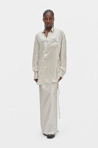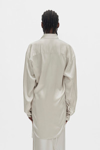 Elisabeth Long High Comfort Shirt - Pearl - Washed Silk Satin - Classic Collar - Button Closure - Dropped Shoulders - Long Sleeves - Buttoned Cuffs - Elongated Hem - Twisted Oversized Fit - 100% Silk - Made in Italy Model wears italian size 40 The fit of this item is oversize. If you prefer a narrow fit, consider purchasing this item two size down from your usual size. Care To maintain the beauty and integrity of your purchase, we recommend treating it with care. Simple maintenance practices, such as gentle washing and proper storage, can effectively preserve the longevity of your favorites. We encourage you to refer to the care instructions included with each item, designed to help you keep your purchase in top condition. Design Our dedication to excellence extends beyond materials; it encompasses the artistry and craftsmanship illustrated in every piece we create.