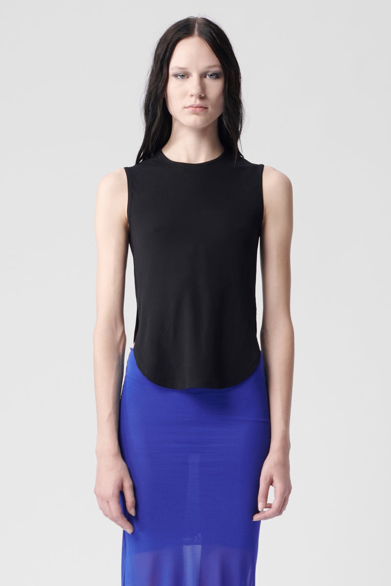 Women's Emy Top - Black - Crepe Viscose Jersey - Round Neck - Sleeveless - Rounded Hem - 92% Viscose - 8% Elastane - Made In Italy