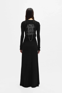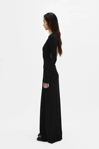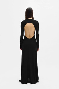 Eva Long Open Back Knitted Dress - Black - Crewneck - Long Sleeves - Open Back - Raw-Edge Hem And Cuffs - Floor Length - Slim Fit - 50% Cotton, 30% Cashmere, 20% Silk - Made in Italy Model wears italian size S The fit of this item is regular. Consider to purchase your usual size. Care To maintain the beauty and integrity of your purchase, we recommend treating it with care. Simple maintenance practices, such as gentle washing and proper storage, can effectively preserve the longevity of your favorites. We encourage you to refer to the care instructions included with each item, designed to help you keep your purchase in top condition. Design Our dedication to excellence extends beyond materials; it encompasses the artistry and craftsmanship illustrated in every piece we create.