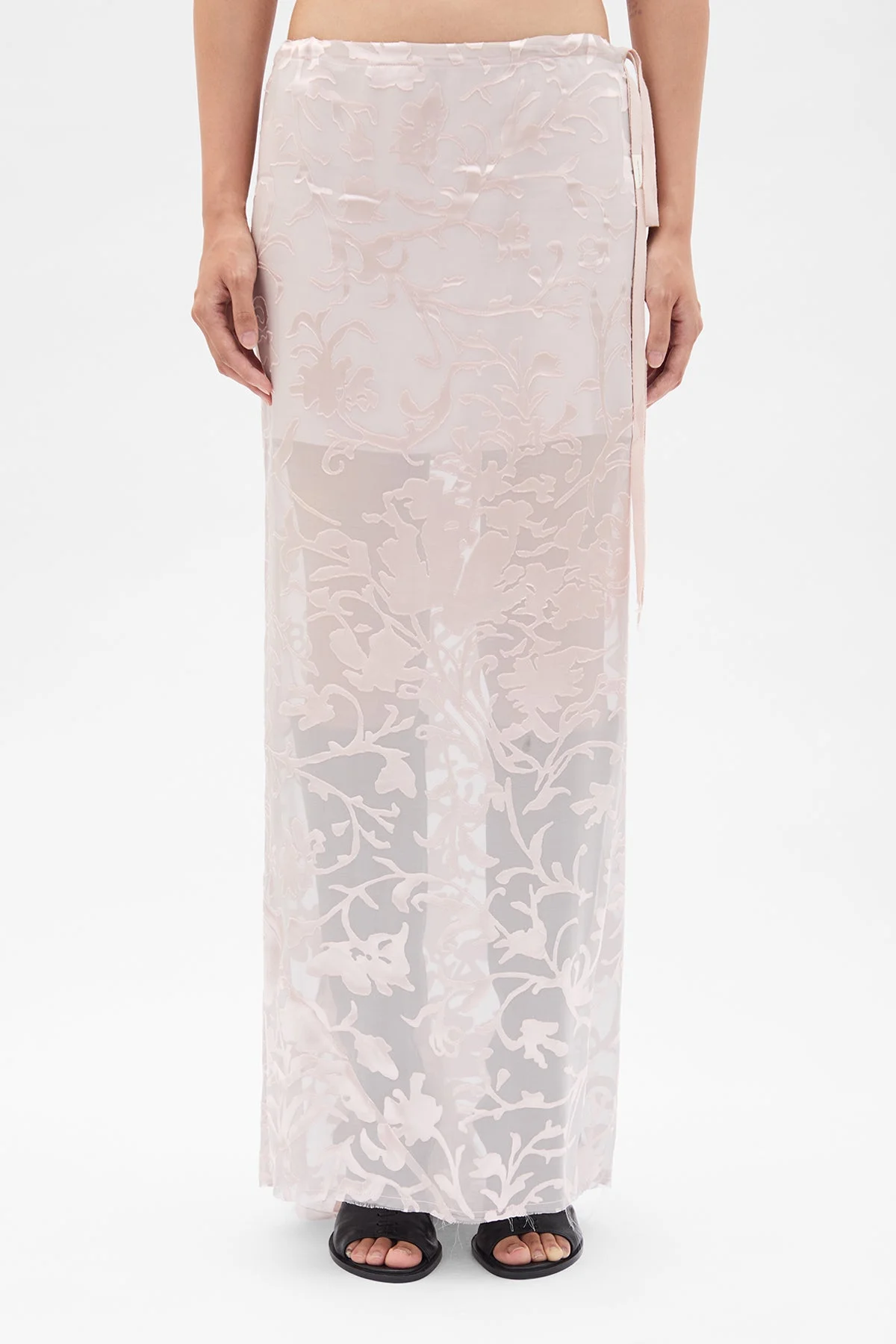 Eveline Long Bias Skirt - Pale Rose - Viscose-Silk Blend - Delicate Floral Embroidery - Adjustable Tie Waist - Semi-Sheer Design - Floor-Length Silhouette - 59% Viscose 41% Silk - Made in Italy Model wears italian size 40 Care To maintain the beauty and integrity of your purchase, we recommend treating it with care. Simple maintenance practices, such as gentle washing and proper storage, can effectively preserve the longevity of your favorites. We encourage you to refer to the care instructions included with each item, designed to help you keep your purchase in top condition. Design Our dedication to excellence extends beyond materials; it encompasses the artistry and craftsmanship illustrated in every piece we create.