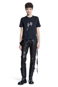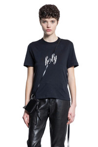 DESCRIPTION - Black - Brushed cotton jersey - Round neck - Front holy print - Short sleeves - Regular fit - The fit of this item is regular. You may consider purchasing your usual size. DETAILS - Made in: Italy - Composition: 100% Cotton - Model code: B0012545FA206 099 - Item ID: 9364471808342 SIZE & FIT Model wears size S Model Height 177 cm Bust 74 cm Waist 61 cm Hips 86 cm