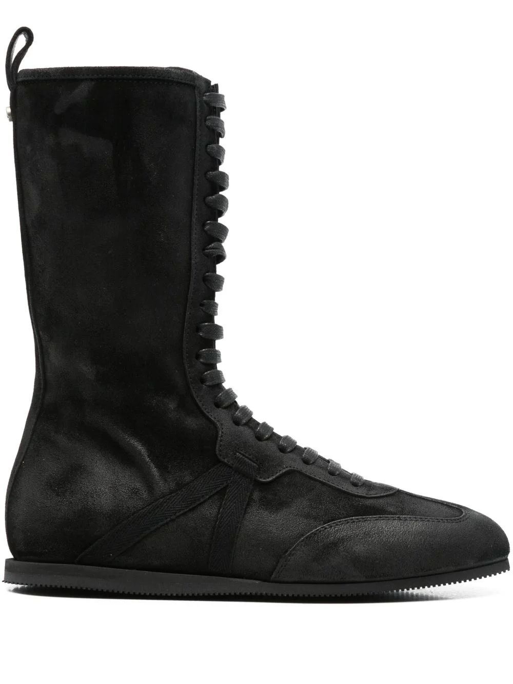 suede boots Highlights - Black - Side zip fastening - Front lace-up fastening - Pull-tab at the heel - Logo patch at the tongue Made in Italy Composition Outer: Other Fabrics 100%, Calf Suede 100% Sole: Rubber 100% Lining: Calf Leather 100%