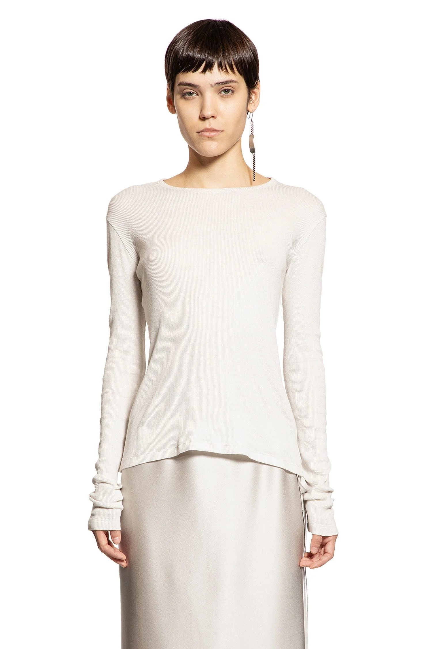 DESCRIPTION - Ivory - Cotton Rib Jersey - Round Neck - Dropped Shoulders - Long Sleeves - Slim Fit DETAILS - Made in: Portugal - Composition: 100% Cotton - Model code: B0011488FA659 003 - Item ID: 9680466837846