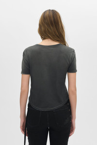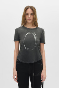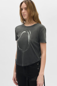 Floor "Infinite Feathers" Micro T-Shirt - Faded Black - Sheer Light Cotton Jersey - Round Neck - Front Graphic Print - Dropped Shoulders - Curved Hem - Small Fit - 100% Cotton - Made in Portugal Model wears size S The fit of the item is narrow. Please consider this when selecting your size. Care To maintain the beauty and integrity of your purchase, we recommend treating it with care. Simple maintenance practices, such as gentle washing and proper storage, can effectively preserve the longevity of your favorites. We encourage you to refer to the care instructions included with each item, designed to help you keep your purchase in top condition. Design Our dedication to excellence extends beyond materials; it encompasses the artistry and craftsmanship illustrated in every piece we create.
