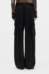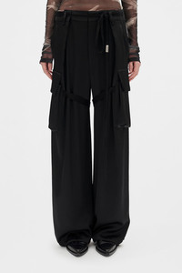 Fressa Cargo Pants in Fluid Cady Satin - Black - Fluid Cady Satin - Belt Holes - Hook and Zip Closure - Adjustable and Removable Self-Tie Ribbon - Side Pockets - Cargo Pockets with Signature Buckled Grosgrain Straps - Drawstring Hems - Relaxed Fit - 73% Acrylic, 27% Viscose - Made in Italy Model wears italian size 40 The fit of this item is over. It can be worn as a regular fit using the internal button adjustment Care To maintain the beauty and integrity of your purchase, we recommend treating it with care. Simple maintenance practices, such as gentle washing and proper storage, can effectively preserve the longevity of your favorites. We encourage you to refer to the care instructions included with each item, designed to help you keep your purchase in top condition. Design Our dedication to excellence extends beyond materials; it encompasses the artistry and craftsmanship illustrated in every piece we create.