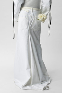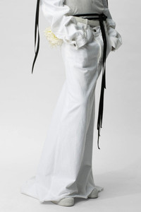 Women's white Goele five pockets comfort skirt-Denim white-Regular Fit-Laces closure detail-100% Cotton-Made in Italy Model wears Italian size 40 Height: 179 cm