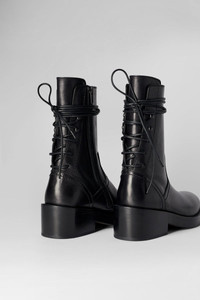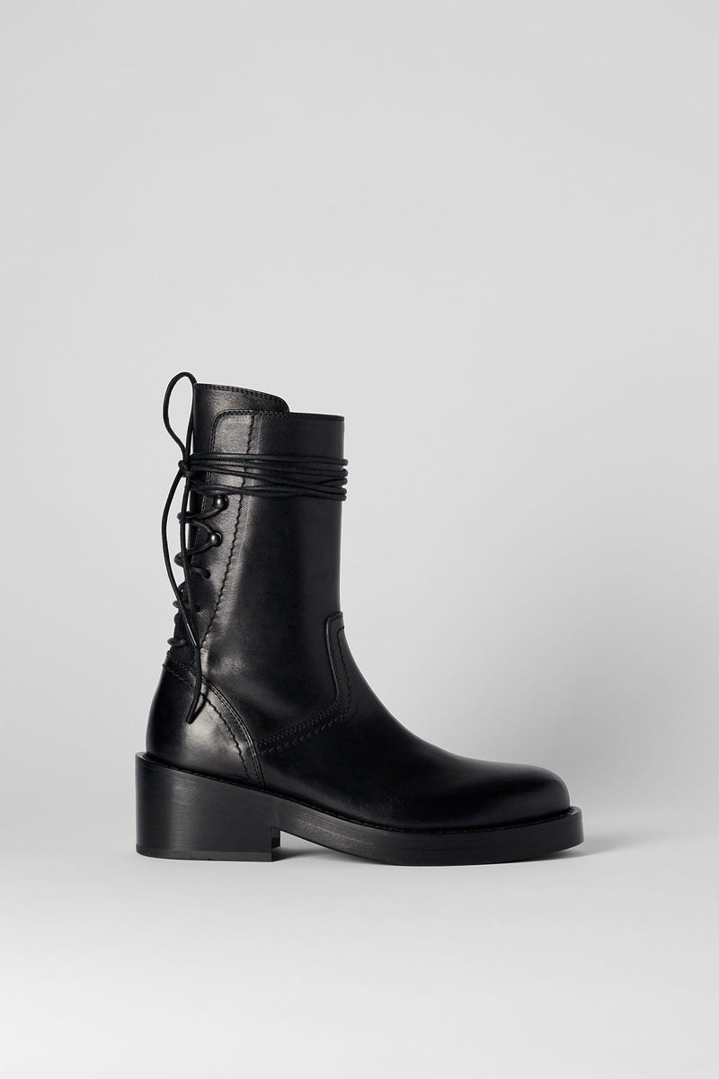 Women's Henrica Ankle Boots - Black - Side zip closure - Black laces detail - Round toe - 100% Calf Leather - Made In Italy