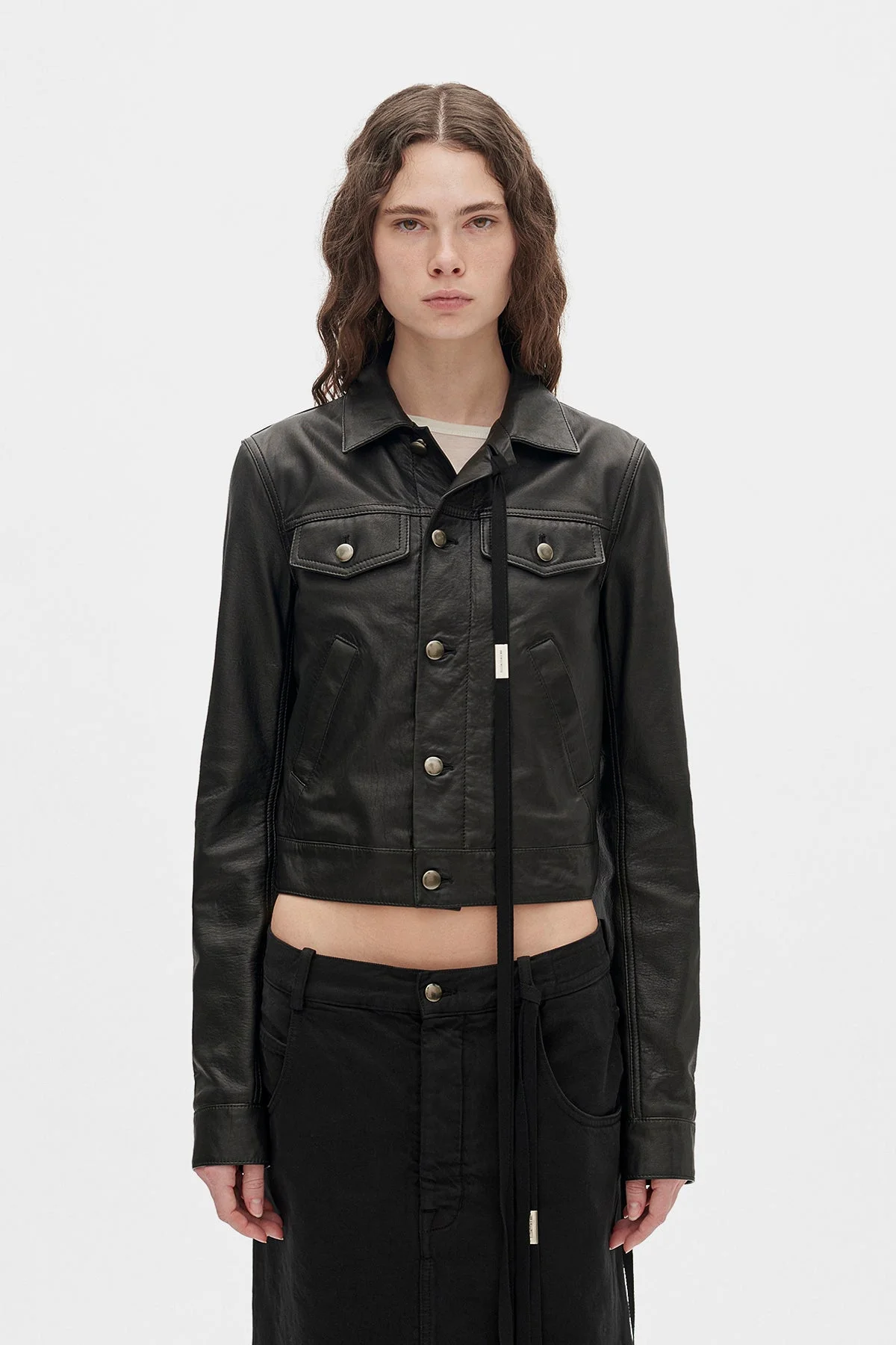 Ilmi Blouson - Black - Structured satin Leather - Collar - Button Closure - Button Flap Chest Pockets - Side Pockets - Press Stud Cuffs - Cropped Hem - Regular Boxy Fit - 100% Lamb Leather - Made in Italy Model wears italian size 40 The fit of this item is regular. Consider to purchase your usual size. Care To maintain the beauty and integrity of your purchase, we recommend treating it with care. Simple maintenance practices, such as gentle washing and proper storage, can effectively preserve the longevity of your favorites. We encourage you to refer to the care instructions included with each item, designed to help you keep your purchase in top condition. Design Our dedication to excellence extends beyond materials; it encompasses the artistry and craftsmanship illustrated in every piece we create.