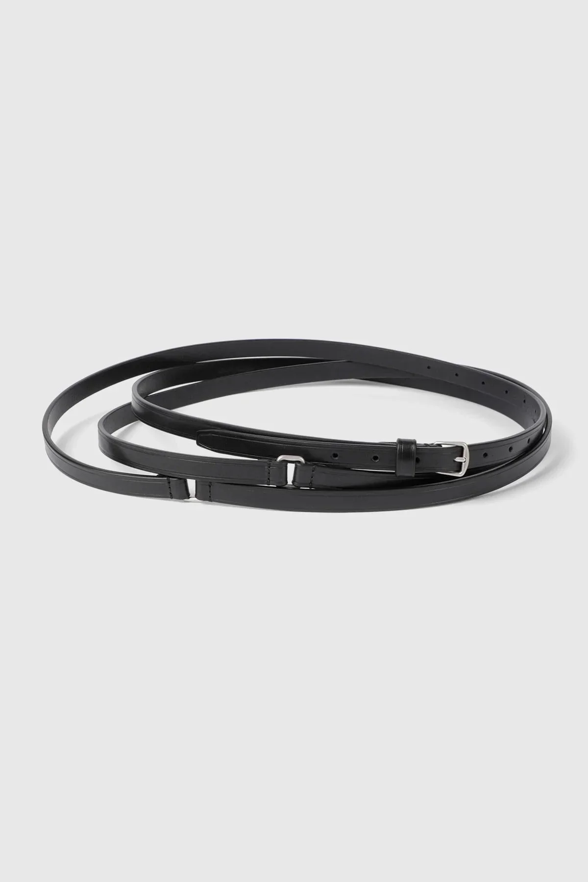 Kepa Triple Wrap Belt - Black - Wrap-Around Strap - Metal Rings - Adjustable Metal Buckle - 100% Calf Leather - Made in ItalyHeight: 1,5 cm