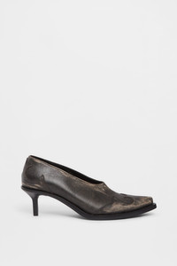 Janeka Western-Stitched Pumps - Dark Brown - Washed Grained Calfskin - Pointed Toe - Western-Inspired Stitching - Curved Vamp Line - Leather Covered Heel - Leather Sole - 100% Calf Leather - Made in Italy Ann Demeulemeester shoes embody the essence of luxury and comfort. The generously wide fit is a design choice aimed at ensuring a comfortable wear. For those who prefer a snugger fit, we recommend using an insole. Crafted from the highest quality leather, it is natural for the shoes to feel stiff initially. By wearing and walking in them, they will perfectly mold to the shape of your feet, offering unparalleled comfort. The fit of the item is slim. Please consider this when selecting your size. Care To maintain the beauty and integrity of your purchase, we recommend treating it with care. Simple maintenance practices, such as gentle washing and proper storage, can effectively preserve the longevity of your favorites. We encourage you to refer to the care instructions included with each item, designed to help you keep your purchase in top condition. Design Our dedication to excellence extends beyond materials; it encompasses the artistry and craftsmanship illustrated in every piece we create.