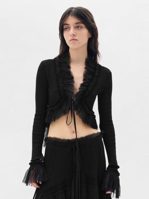 Jedi Long Sleeve Open Front Top - Natural White - 100% Cotton - Silk Creponne Ruffles - Open Front Design - Long Sleeves - Made in Italy Model wears italian size 40 Care To maintain the beauty and integrity of your purchase, we recommend treating it with care. Simple maintenance practices, such as gentle washing and proper storage, can effectively preserve the longevity of your favorites. We encourage you to refer to the care instructions included with each item, designed to help you keep your purchase in top condition. Design Our dedication to excellence extends beyond materials; it encompasses the artistry and craftsmanship illustrated in every piece we create.