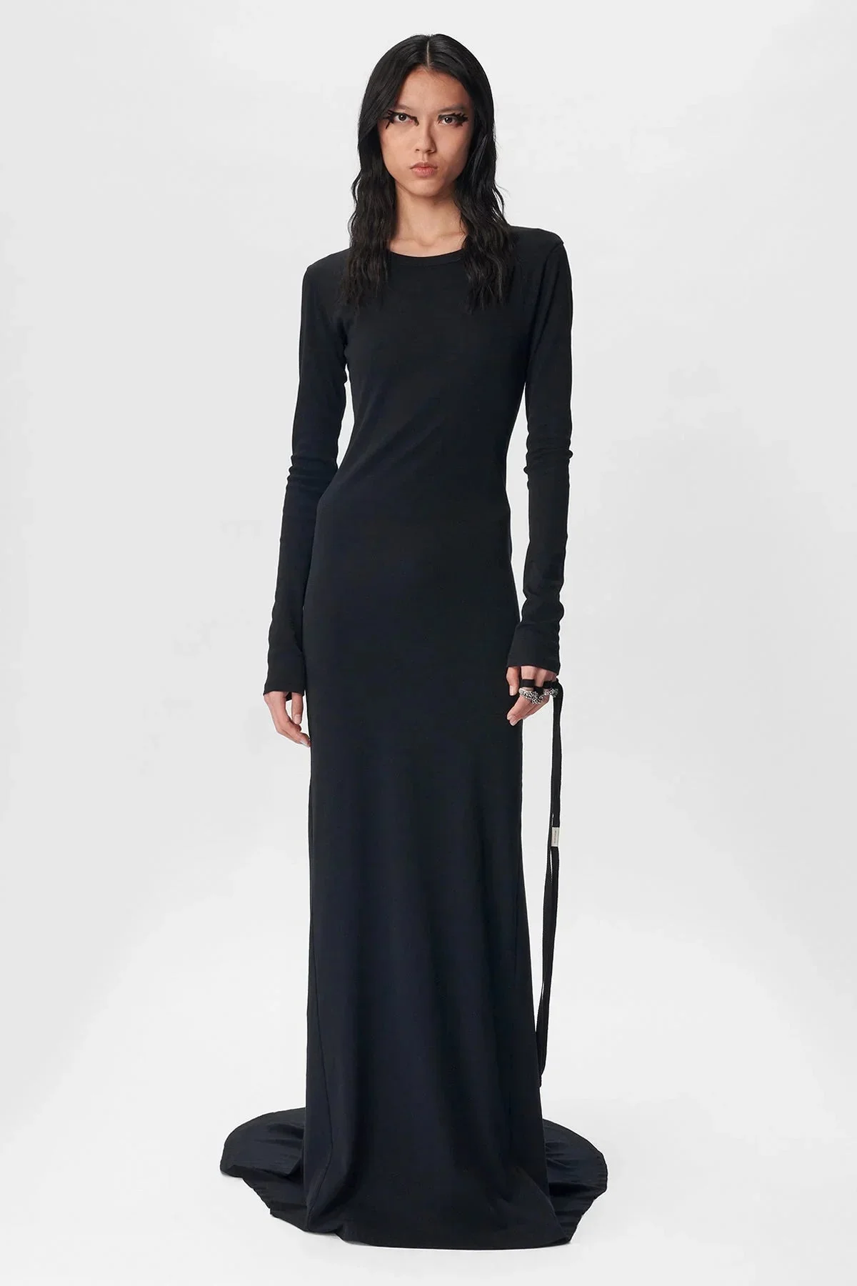 Women's Jesse X-Long Sleeve Long Flared Dress - Runway Style - Black - Round Neck - Long Sleeves - Draped Back - Flared Skirt - Floor Length - 100% Cotton - Made In Portugal Model wears Italian size 40 Height: 177 cm Waist: 59 cm Hips: 86 cm