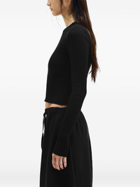 Kati cropped ribbed T-shirt Highlights - Black - Crew neck - Fitted design - Cropped - Long sleeves - Ribbed texture Made in Italy Composition Cotton 50%, Wool 30%, Silk 20%