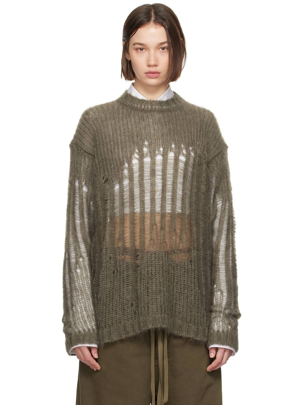Rib-knit and open-knit mohair- and silk-blend sweater. Laddering throughout. · Crewneck · Dropped shoulders Supplier color: Loden Green