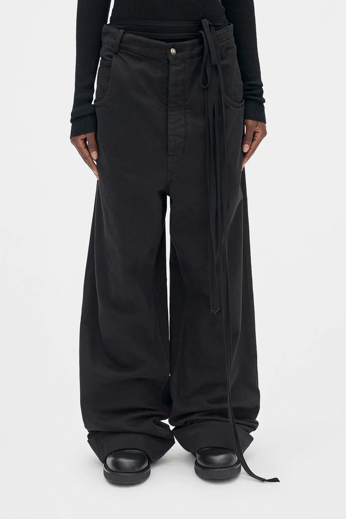 Kristel 5 Pocket high Comfort Trousers - Black - Denim - Belt Holes - Removable Signature Grosgrain Ribbon - Button closure - 5 pockets - Wide leg - Baggy fit - Floor length -100% Cotton - Made in Italy Model wears italian size 40 The fit of this item is oversize. If you prefer a narrow fit, consider purchasing this item two size down from your usual size. Care To maintain the beauty and integrity of your purchase, we recommend treating it with care. Simple maintenance practices, such as gentle washing and proper storage, can effectively preserve the longevity of your favorites. We encourage you to refer to the care instructions included with each item, designed to help you keep your purchase in top condition. Design Our dedication to excellence extends beyond materials; it encompasses the artistry and craftsmanship illustrated in every piece we create.