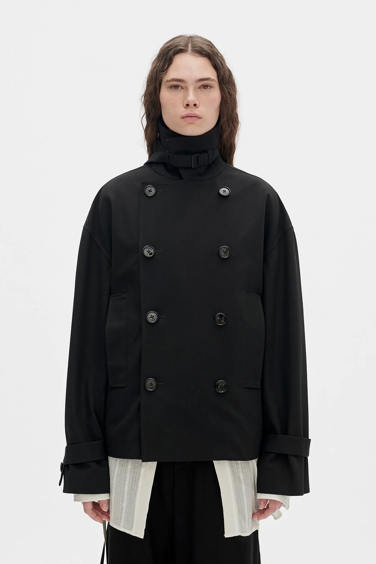 leni Cropped Trench Coat - Black - Cotton Twill - Collar - Buckled Throat Latch - Double-Breasted - Button Closure - Adjustable and Removable Buckled Belt - Side Pockets - Dropped Shoulders - Buckled Cuff Straps - Back Gathered Shoulder Yoke - Cropped Hem - 100% Cotton - Made In Italy Model wears italian size 40 The fit of this item is oversize. If you prefer a narrow fit, consider purchasing this item one size down from your usual size. Care To maintain the beauty and integrity of your purchase, we recommend treating it with care. Simple maintenance practices, such as gentle washing and proper storage, can effectively preserve the longevity of your favorites. We encourage you to refer to the care instructions included with each item, designed to help you keep your purchase in top condition. Design Our dedication to excellence extends beyond materials; it encompasses the artistry and craftsmanship illustrated in every piece we create.