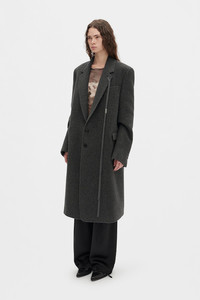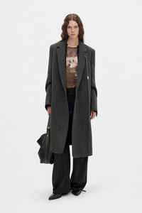 Viv High Comfort Tailored Coat - Grey - Wool Felt - Notched Collar - Padded Shoulders - Removable Signature Grosgrain Ribbon - Chest Pocket - Side Flap Pockets - Dropped Shoulders - Slouched Sleeves - Back Split - Oversized Fit - 70% Virgin Wool, 30% Polyamide - Made in Italy The model wears italian size 40 The fit of this item is oversize. If you prefer a narrow fit, consider purchasing this item two size down from your usual size. Care To maintain the beauty and integrity of your purchase, we recommend treating it with care. Simple maintenance practices, such as gentle washing and proper storage, can effectively preserve the longevity of your favorites. We encourage you to refer to the care instructions included with each item, designed to help you keep your purchase in top condition. Design Our dedication to excellence extends beyond materials; it encompasses the artistry and craftsmanship illustrated in every piece we create.