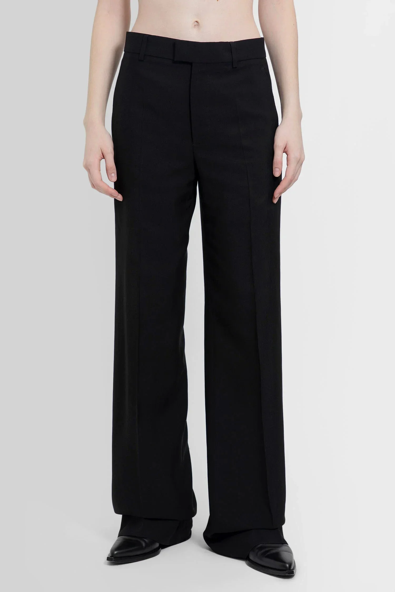 DESCRIPTION - Runway Style - black - viscose calico - leg crease - belt holes - hook and zip closure - side pockets - asymmetric back pockets - flared leg - The fit of this item is regular. Consider to purchase your usual size. DETAILS - Made in: Italy - Composition: 100% Viscose - Model code: B0011423FA423 099 - Item ID: 8743252984150 SIZE & FIT Model wears size 40 Model Height 180 cm Bust 82 cm Waist 59 cm Hips 89 cm
