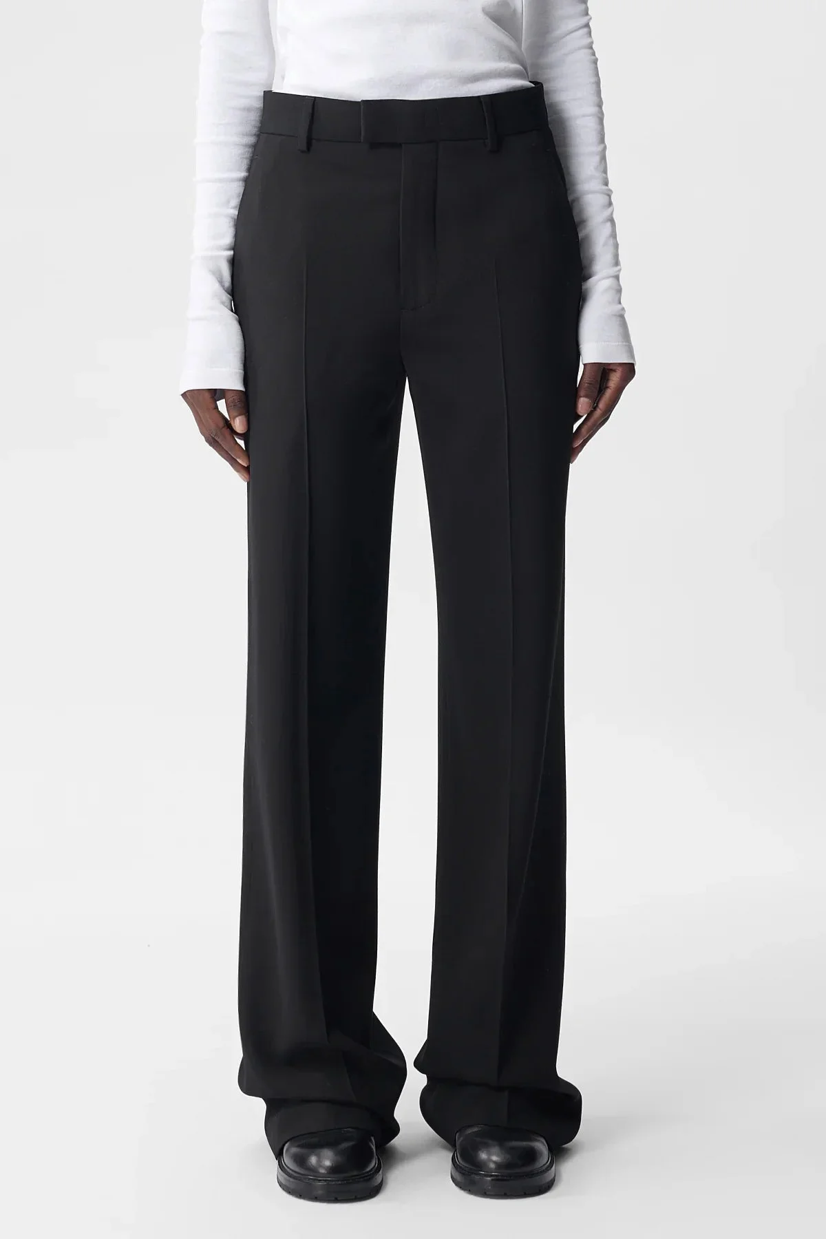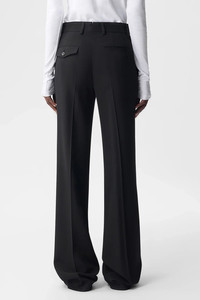 Maaike Flared Comfort Trousers in Viscose Twill - Black - Viscose Twill - Belt Holes - Hook and Zip Closure - Side Pockets - Asymmetric Back Pockets - Flared Leg - Comfort Fit - 71% Viscose - 29% Virgin Wool - Made in Italy