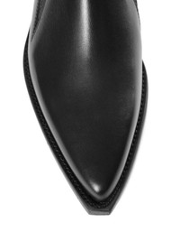 Makea pointy cowboy shoes Highlights - Black - Pointed toe - Elastic side panels - Low heel - Smooth finish Imported Composition Outer: Calf Leather 100% Lining: Calf Leather 100% Sole: Calf Leather 100%