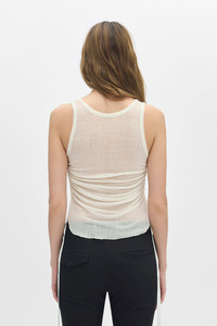 Mara Wrinkled Cropped Tank Top - White - Light Cotton Rib - Scoop Neck - Ruched Gathering With Grosgrain Straps - Cropped Hem - 100% Cotton - Made In Portugal Model wears italian size S The fit of this item is fitted. Consider to purchase your usual size. Care To maintain the beauty and integrity of your purchase, we recommend treating it with care. Simple maintenance practices, such as gentle washing and proper storage, can effectively preserve the longevity of your favorites. We encourage you to refer to the care instructions included with each item, designed to help you keep your purchase in top condition. Design Our dedication to excellence extends beyond materials; it encompasses the artistry and craftsmanship illustrated in every piece we create.