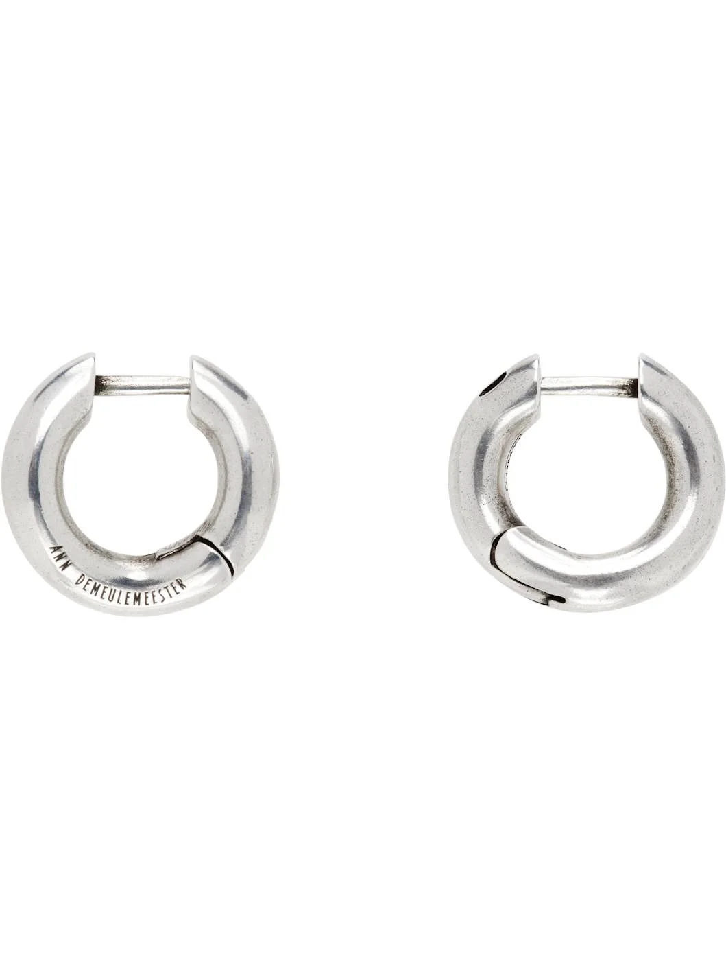Pair of hoop earrings in sterling silver. · Logo engraved at side · Post-stud fastening · D0.5" Supplier color: Antique silver 925 sterling silver. Made in Italy 252378F022001