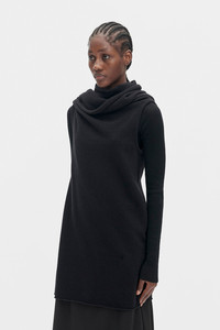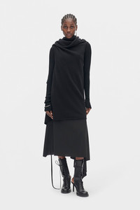 Nadine 3 Holes Top - Black - Felted Wool Knit - Cowl Neck - adjustable Scarf Panel - Long Sleeves - Straight Hem - Draped - 100% Wool - Made in Italy Care To maintain the beauty and integrity of your purchase, we recommend treating it with care. Simple maintenance practices, such as gentle washing and proper storage, can effectively preserve the longevity of your favorites. We encourage you to refer to the care instructions included with each item, designed to help you keep your purchase in top condition. Design Our dedication to excellence extends beyond materials; it encompasses the artistry and craftsmanship illustrated in every piece we create.