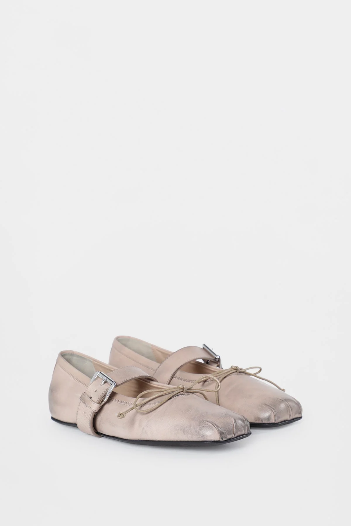 Zoey Ballerinas - Black - Nappa Calfskin - Pleated Square Toe - Back Signature Rivet - Front Rope Bow - Buckled Ankle Belt Strap - Leather Sole - 100% Calf Leather - Made in Italy Ann Demeulemeester shoes embody the essence of luxury and comfort. The generously wide fit is a design choice aimed at ensuring a comfortable wear. For those who prefer a snugger fit, we recommend using an insole. Crafted from the highest quality leather, it is natural for the shoes to feel stiff initially. By wearing and walking in them, they will perfectly mold to the shape of your feet, offering unparalleled comfort. The fit of this item is regular comfort. Consider to purchase your usual size. Care To maintain the beauty and integrity of your purchase, we recommend treating it with care. Simple maintenance practices, such as gentle washing and proper storage, can effectively preserve the longevity of your favorites. We encourage you to refer to the care instructions included with each item, designed to help you keep your purchase in top condition. Design Our dedication to excellence extends beyond materials; it encompasses the artistry and craftsmanship illustrated in every piece we create.