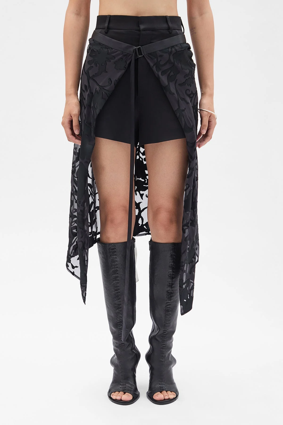 Nita Fluid Apron - Black - Viscose Blend - Sheer Floral Overlay - Adjustable Tie Waist - Layered Design - 59% Viscose 41% Silk - Made in Italy Model wears italian size S Care To maintain the beauty and integrity of your purchase, we recommend treating it with care. Simple maintenance practices, such as gentle washing and proper storage, can effectively preserve the longevity of your favorites. We encourage you to refer to the care instructions included with each item, designed to help you keep your purchase in top condition. Design Our dedication to excellence extends beyond materials; it encompasses the artistry and craftsmanship illustrated in every piece we create.