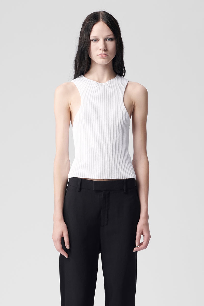 Women's Noya Top - White - Mercerized Cotton Knit - Round Neck - Sleeveless - Cropped Hem - Fitted - 100% Cotton - Made In Italy