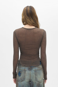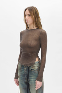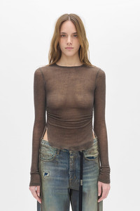 Oke Long Sleeve Crop Top - Sage - Round Neck - Side Ruched Gathering - Curved Raw-Edge Hem - 80% Wool 20% Polyamide - Made in Italy Model wears size S The fit of the item is narrow. Please consider this when selecting your size. Care To maintain the beauty and integrity of your purchase, we recommend treating it with care. Simple maintenance practices, such as gentle washing and proper storage, can effectively preserve the longevity of your favorites. We encourage you to refer to the care instructions included with each item, designed to help you keep your purchase in top condition. Design Our dedication to excellence extends beyond materials; it encompasses the artistry and craftsmanship illustrated in every piece we create.