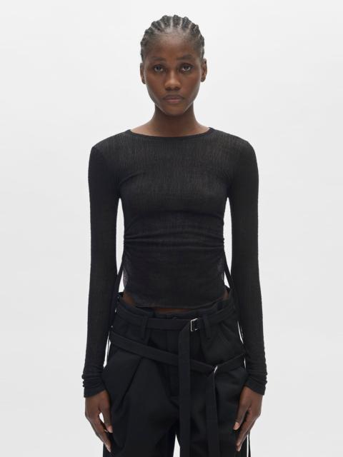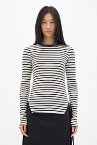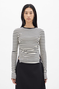 Oke Wrinkled Cropped Long Sleeve Top - Black/Chalk - 100% Cotton - Wrinkled Texture - Side Cut-Out Details - Crew Neck - Long Sleeves - Cropped Fit - Made in Portugal Model wears italian size S Care To maintain the beauty and integrity of your purchase, we recommend treating it with care. Simple maintenance practices, such as gentle washing and proper storage, can effectively preserve the longevity of your favorites. We encourage you to refer to the care instructions included with each item, designed to help you keep your purchase in top condition. Design Our dedication to excellence extends beyond materials; it encompasses the artistry and craftsmanship illustrated in every piece we create.
