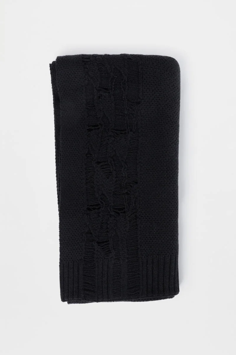 Pal Destroyed Seed Stitch Scarf - Black - Destroyed Seed Stitch Knit - Ribbed Ends - 30x200 cm - 100% Wool - Made in Italy