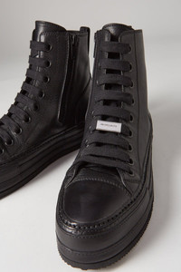Men's Raven sneakers- Black- Side zip closure- Black laces- Splash- Rubber sole- Logo silver plate- 100% Calf Leather- Made in Italy