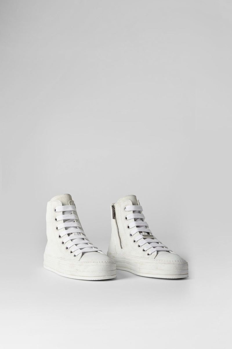 Men'S Raven Sneakers - White - Side zip closure - White laces - 100% Calf Leather - Crosta painted - Made In Italy