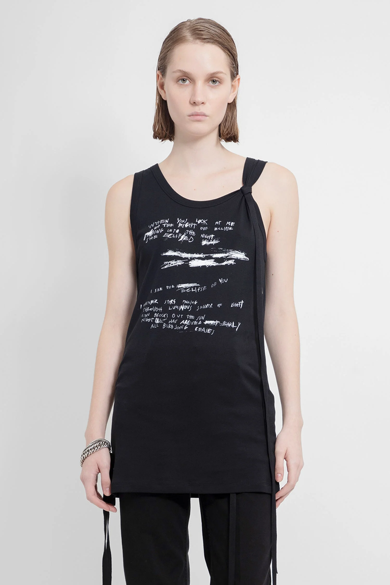 DESCRIPTION - Black - Scoop neck - Removable ribbon with engraved logo plaque - Front ''Handwriting'' graphic Print - Sleeveless - regular fit - The fit of this item is fitted. Consider to purchase your usual size. DETAILS - Made in: Portugal - Composition: 100% Cotton - Model code: B0011983FA045 099 - Item ID: 8712677556566