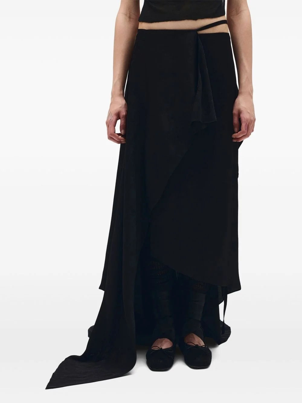 Sirka skirt Highlights - Black - Rear tie fastening - Layered design - High-low hem - Long length Made in Italy Composition Viscose 79%, Silk 21% Washing instructions Read Manufacturer Guidelines