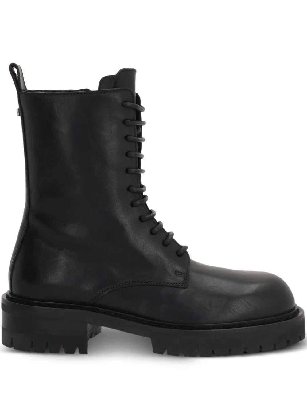 Skagi lace-up lug-sole combat boots Highlights - Black - Leather upper - Lace-up fastening - Side zip closure - Round toe - Lug sole Made in Italy Composition Lining: Calf Leather 100% Outer: Calf Leather 100% Sole: Rubber 100%
