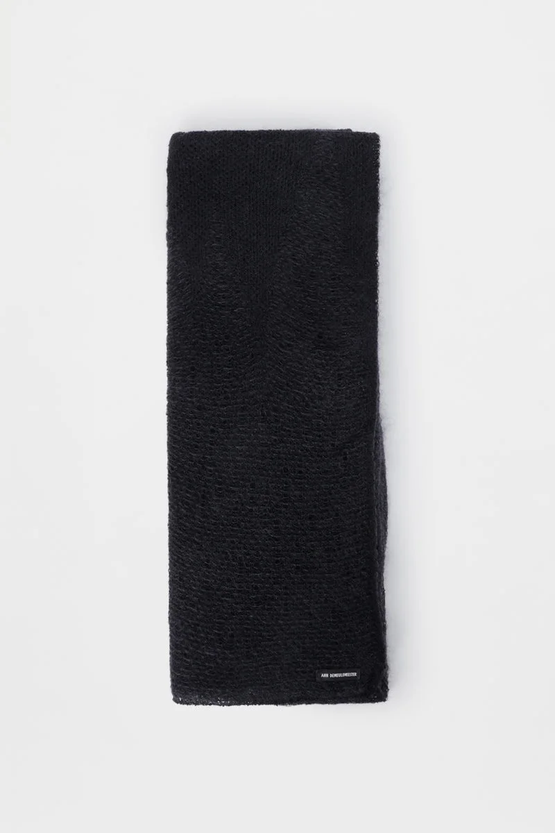 Tuva Scarf - Black - Brushed Mohair Silk Jacquard Knit - front logo tag - 50 x 250 cm - 70% Mohair, 30% Silk - Made in Italy