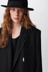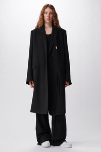 Women's Veria Slouchy Long Jacket Brushed Wool - Black - 98% Virgin Wool 2% Elastan - 100% Acetate detail - Made In Italy Model wears Italian size 40 Height:179 cm Waist:58 cm Hips:90 cm
