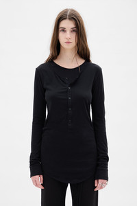 Vero Double Layer Serafino Top - Black - Layered Round And Henley Necks - Dropped Shoulders - Long Sleeves - Curved Hem - Slim Fit - 100% Cotton - Made in Portugal Model wears italian size S The fit of this item is regular. Consider to purchase your usual size. Care To maintain the beauty and integrity of your purchase, we recommend treating it with care. Simple maintenance practices, such as gentle washing and proper storage, can effectively preserve the longevity of your favorites. We encourage you to refer to the care instructions included with each item, designed to help you keep your purchase in top condition. Design Our dedication to excellence extends beyond materials; it encompasses the artistry and craftsmanship illustrated in every piece we create.
