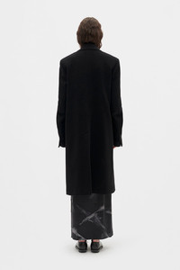 Viv High Comfort Tailored Coat - Black - Wool Felt - Notched Collar - Padded Shoulders - Removable Signature Grosgrain Ribbon - Chest Pocket - Side Flap Pockets - Dropped Shoulders - Slouched Sleeves - Back Split - Oversized Fit - 90% Virgin Wool, 10% Cashmere - Made in Italy The model wears italian size 40 The fit of this item is oversize. If you prefer a narrow fit, consider purchasing this item two size down from your usual size. Care To maintain the beauty and integrity of your purchase, we recommend treating it with care. Simple maintenance practices, such as gentle washing and proper storage, can effectively preserve the longevity of your favorites. We encourage you to refer to the care instructions included with each item, designed to help you keep your purchase in top condition. Design Our dedication to excellence extends beyond materials; it encompasses the artistry and craftsmanship illustrated in every piece we create.
