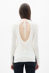 Weja Open Back Sweater - Natural White - Cotton Wool Blend - Open Back with Ribbon Closure - Ribbed Hem and Cuffs - Long Sleeves - Slim Fit - 85% Cotton 15% Wool - Made in Italy Model wears italian size S Care To maintain the beauty and integrity of your purchase, we recommend treating it with care. Simple maintenance practices, such as gentle washing and proper storage, can effectively preserve the longevity of your favorites. We encourage you to refer to the care instructions included with each item, designed to help you keep your purchase in top condition. Design Our dedication to excellence extends beyond materials; it encompasses the artistry and craftsmanship illustrated in every piece we create.