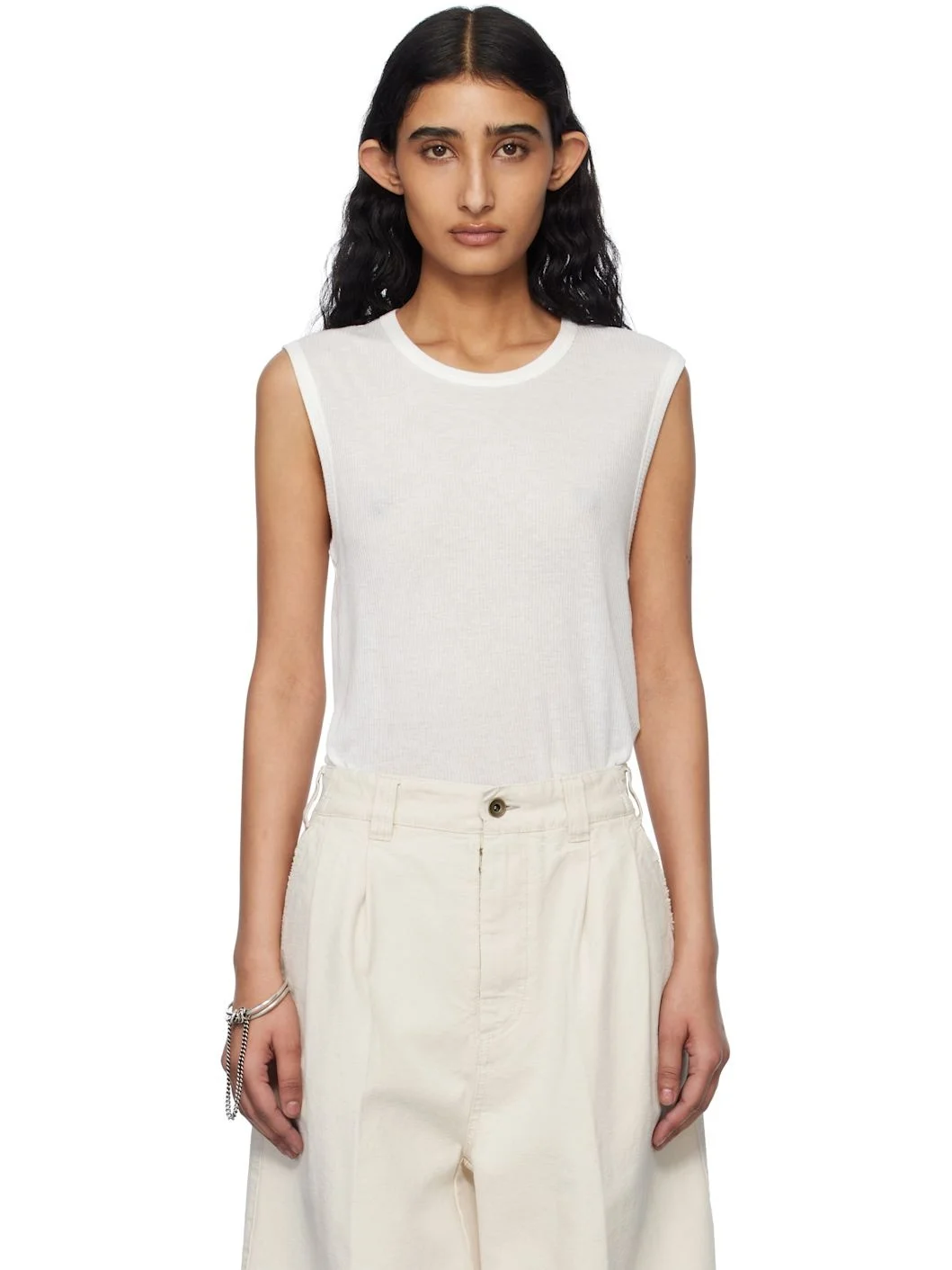 Semi-sheer viscose-blend ribbed jersey tank top. · Crewneck · Detachable strap with logo plaque at interior Supplier color: Natural white 70% viscose, 15% polyamide, 15% cotton. Made in Portugal 251378F111002