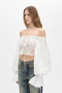 Jorunn Crop Top With Distressed Lace Details – Natural White – Cropped silhouette - 100% Cotton – Made in Italy Model wears italian size 40 The fit of this item is regular. Consider to purchase your usual size. Care To maintain the beauty and integrity of your purchase, we recommend treating it with care. Simple maintenance practices, such as gentle washing and proper storage, can effectively preserve the longevity of your favorites. We encourage you to refer to the care instructions included with each item, designed to help you keep your purchase in top condition. Design Our dedication to excellence extends beyond materials; it encompasses the artistry and craftsmanship illustrated in every piece we create.