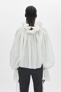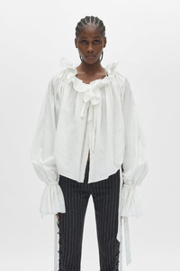 Stee Ruffled Top – White – Lightweight cotton poplin construction -Voluminous silhouette with ruffled detailing- 100% Cotton – Made in Italy Model wears italian size 40 The fit of this item is oversize. If you prefer a narrow fit, consider purchasing this item one size down from your usual size. Care To maintain the beauty and integrity of your purchase, we recommend treating it with care. Simple maintenance practices, such as gentle washing and proper storage, can effectively preserve the longevity of your favorites. We encourage you to refer to the care instructions included with each item, designed to help you keep your purchase in top condition. Design Our dedication to excellence extends beyond materials; it encompasses the artistry and craftsmanship illustrated in every piece we create.